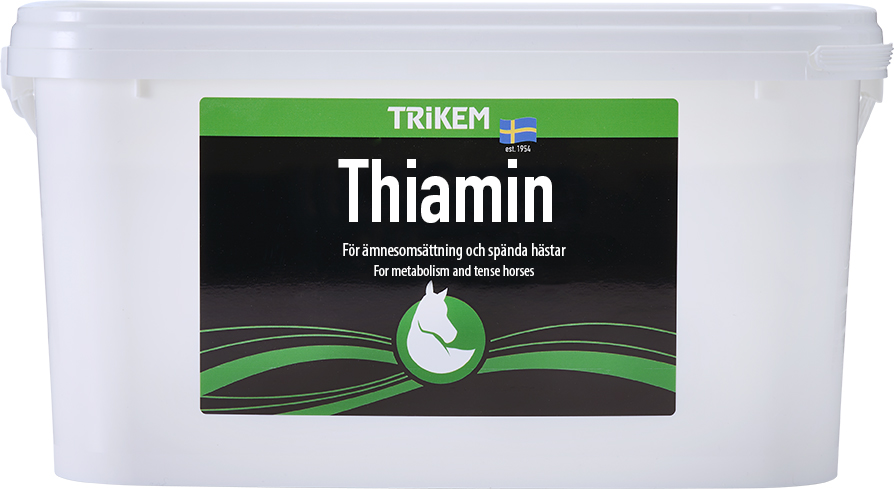 Thiamin spelar en avgörande roll i hästens energimetabolism och ämnesomsättning. Thiamin är speciellt viktigt för att nervsystemet ska fungera normalt och används därför till hästar som lätt blir muskeltrötta eller har en spänd muskulatur.